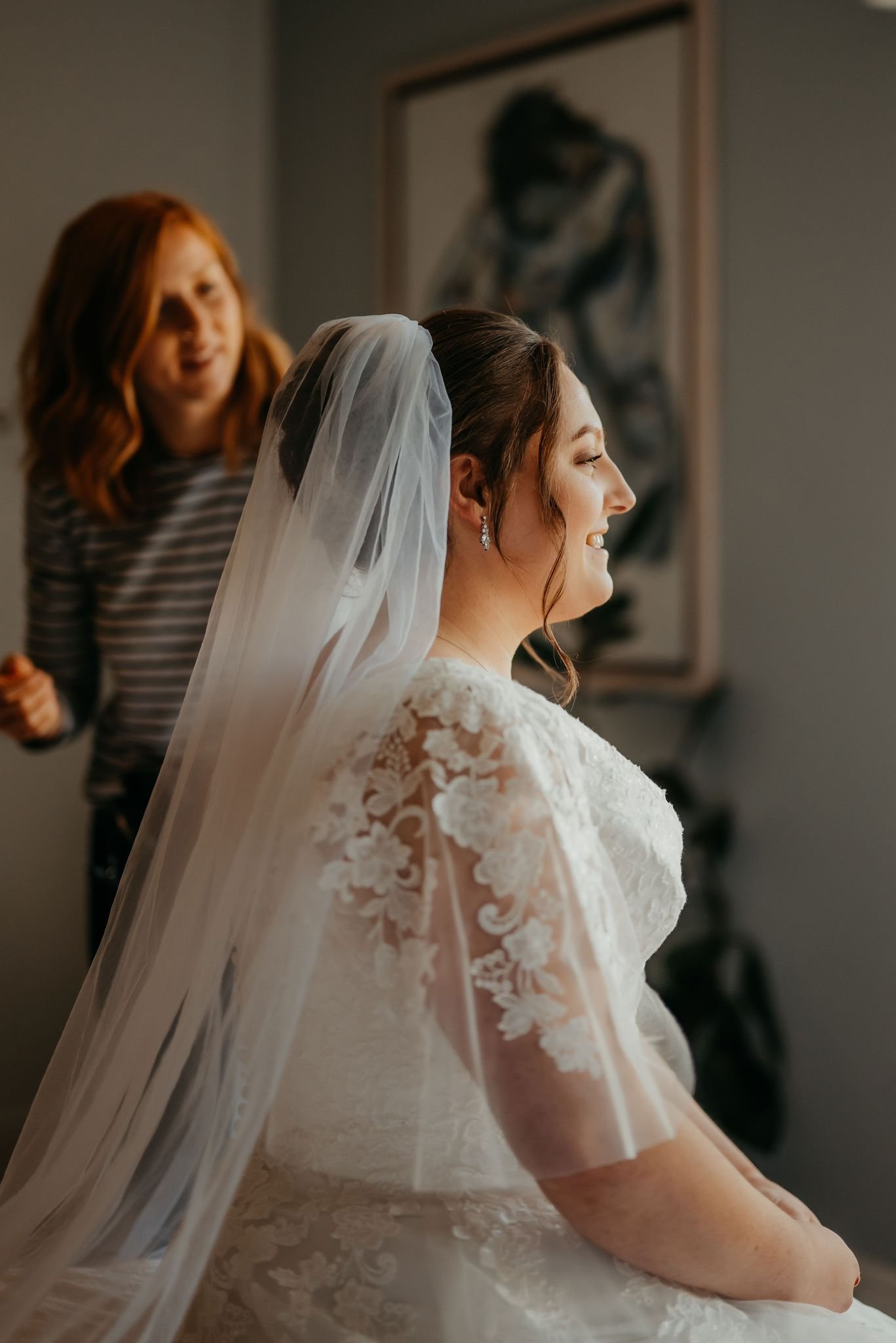 Touch ups on everyone before the ceremony, as we know snags can happen while getting into dresses.